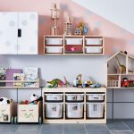 Rak mainan IKEA untuk bilik kanak-kanak dibezakan dengan reka bentuknya yang menarik dan kehadiran sebilangan besar sel. Ini membolehkan anda meletakkan barang dengan mudah tanpa menimbulkan kekacauan. Struktur dengan ukuran yang diinginkan dapat dipasang dari modul rak individu. Kotak plastik dengan pelbagai saiz ditawarkan untuk hampir setiap model.