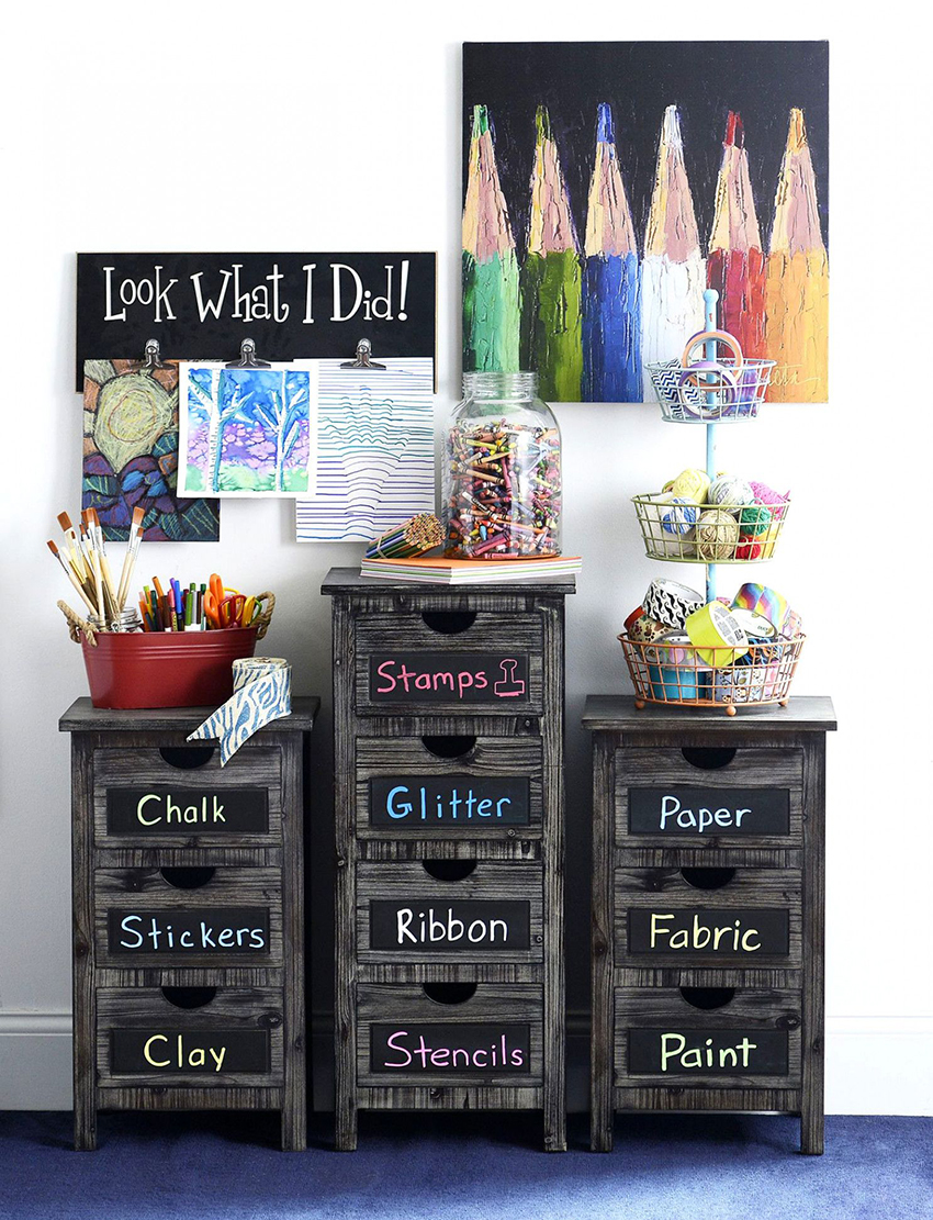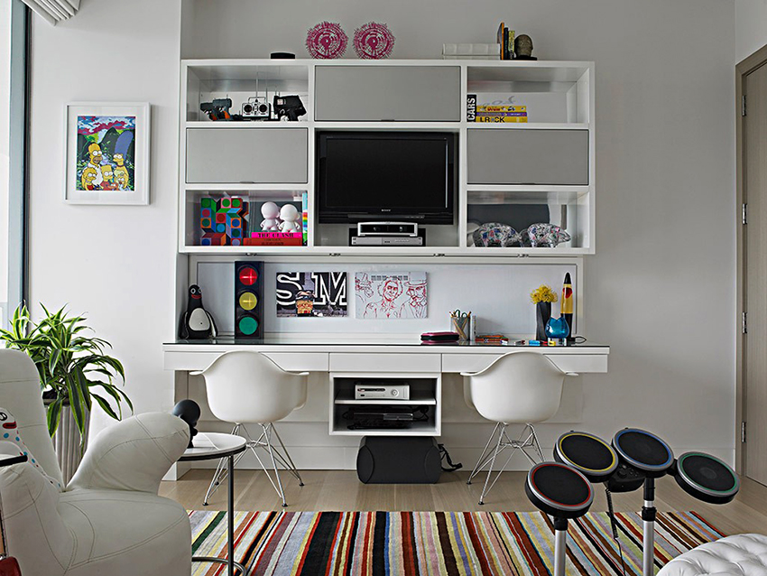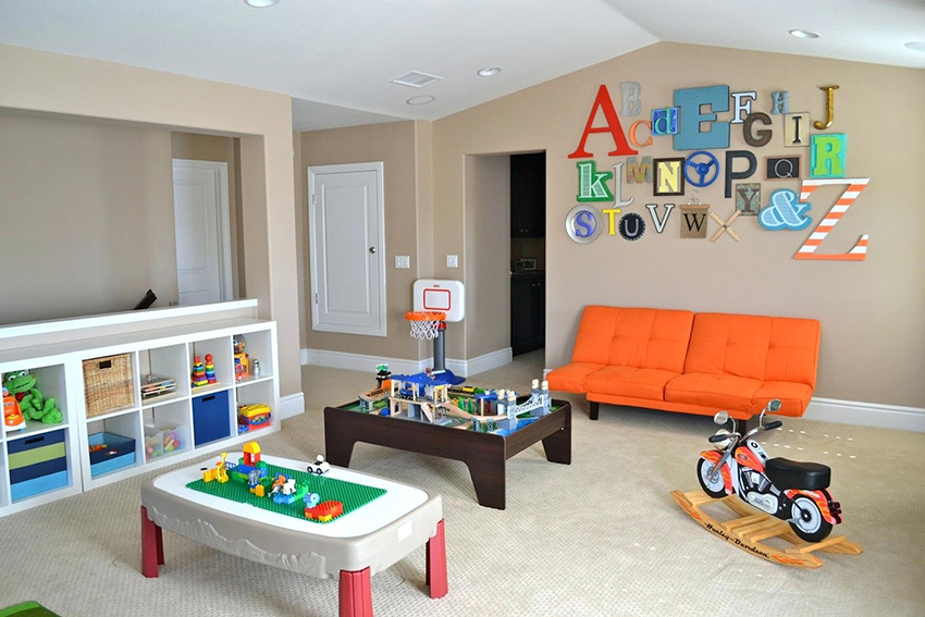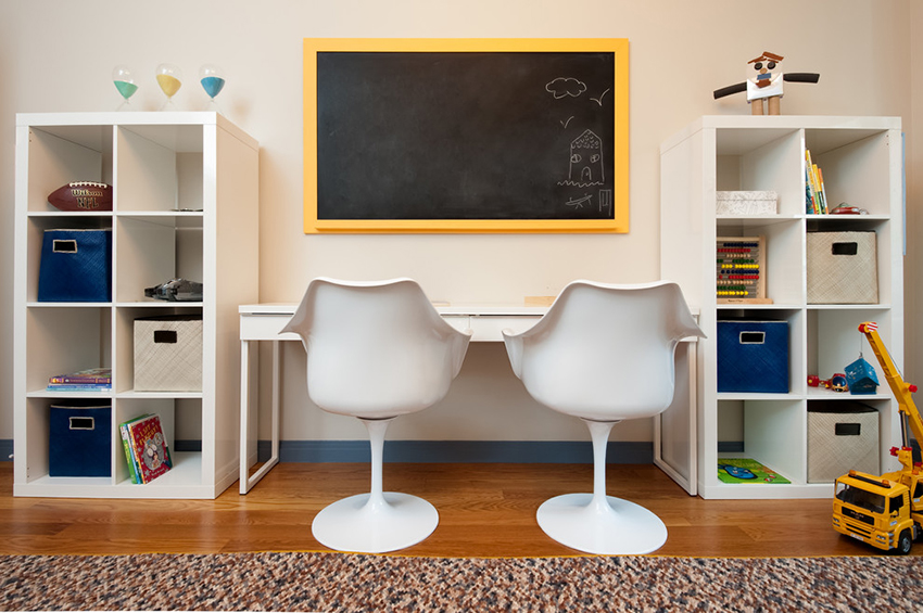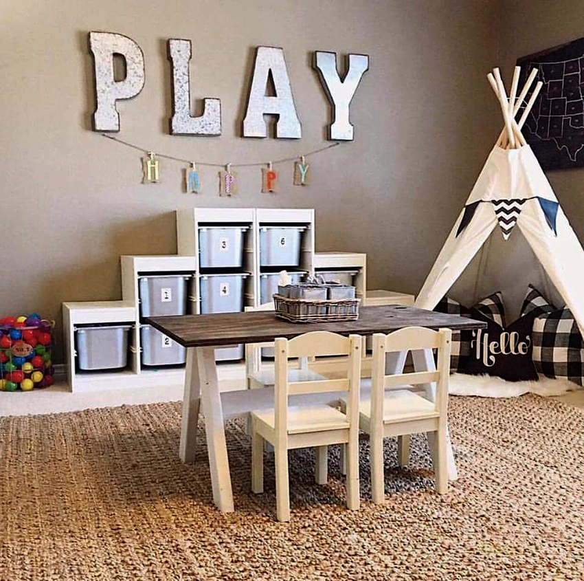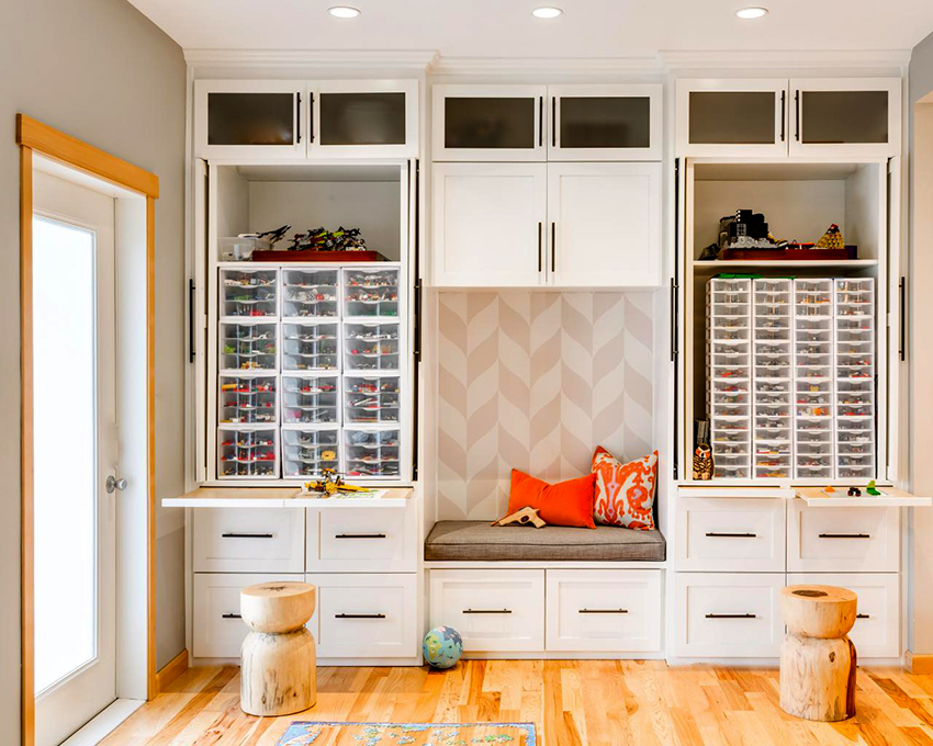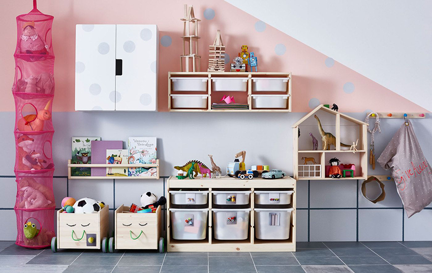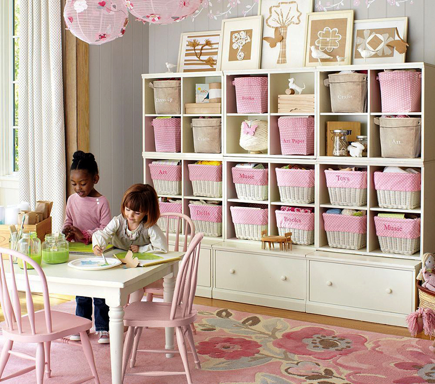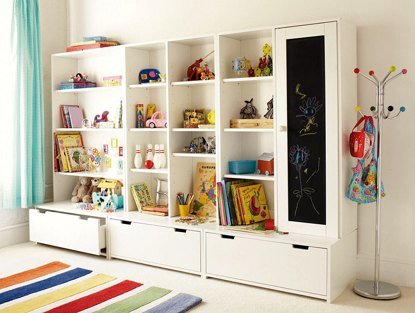 Unit rak boleh digunakan untuk memisahkan kawasan permainan. Lebih senang apabila rak mempunyai pembahagi tambahan. Item boleh dikategorikan mengikut ukuran, bentuk, tujuan atau ciri lain. Untuk kanak-kanak, rak harus dilengkapi dengan kotak di mana mereka boleh meletakkan bahagian kecil.