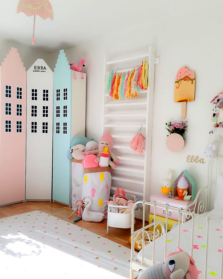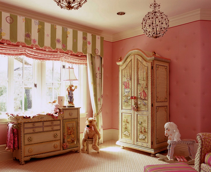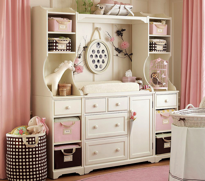 Bagi pilihan almari pakaian untuk kanak-kanak perempuan, antara tempoh kedua dan ketiga, sempadan mungkin tidak ada sama sekali. Bentuk produk tidak menjadi masalah, tetapi perhatian khusus harus diberikan kepada reka bentuk. Lebih baik jika hiasannya boleh ditanggalkan, iaitu, ia boleh diganti. Kisah dongeng, watak kartun, bunga, rama-rama, komposisi abstrak, berubah, akan mewujudkan persekitaran yang ideal untuk seorang gadis.