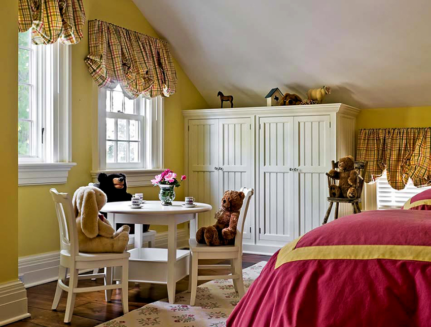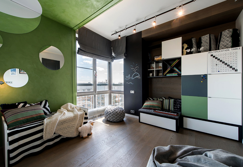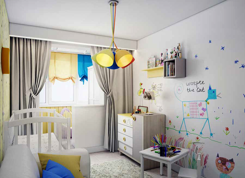 Nasihat berguna! Sekiranya kabinet adalah bahagian dinding kanak-kanak, ia harus diletakkan sehingga sedekat mungkin dengan kawasan permainan.