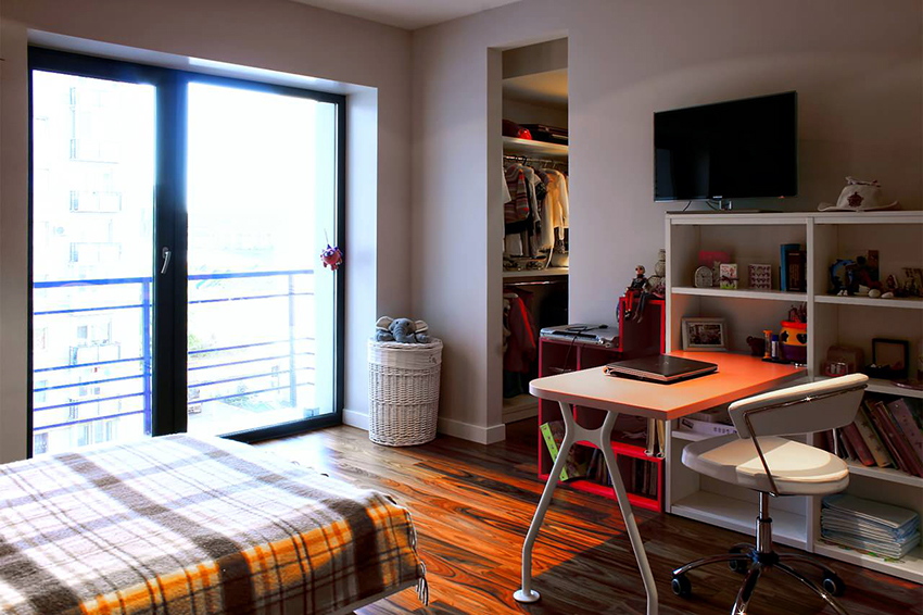 - Pilih model dengan mengambil kira ukuran kawasan yang diperuntukkan. Sekiranya keutamaan diberikan kepada almari pakaian sudut di bilik kanak-kanak, ada baiknya memutuskan ketinggiannya dan cara membuka pintu yang bergantung secara langsung di atasnya.