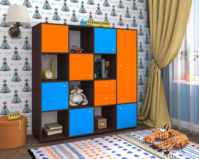 Terdapat rak di bahagian dalam hampir setiap bilik kanak-kanak. Ini adalah rak yang disusun dalam beberapa peringkat dan disambungkan ke dalam satu struktur. Tujuan perabot ini sangat berbeza, boleh digunakan untuk penyimpanan: