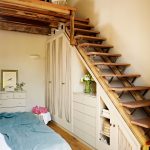 Selalunya, pemilik rumah desa memilih untuk menyusun almari pakaian di bawah tangga.Pilihan ini sesuai kerana ia membolehkan anda memasang perabot dengan ketinggian yang berbeza. Contohnya, kabinet kecil boleh digunakan untuk menyimpan barang-barang kanak-kanak. Pembinaan yang rendah pada awal tangga akan membolehkan bayi melipat pakaian mereka sendiri. Cangkuk untuk jaket juga boleh dilampirkan di sini.