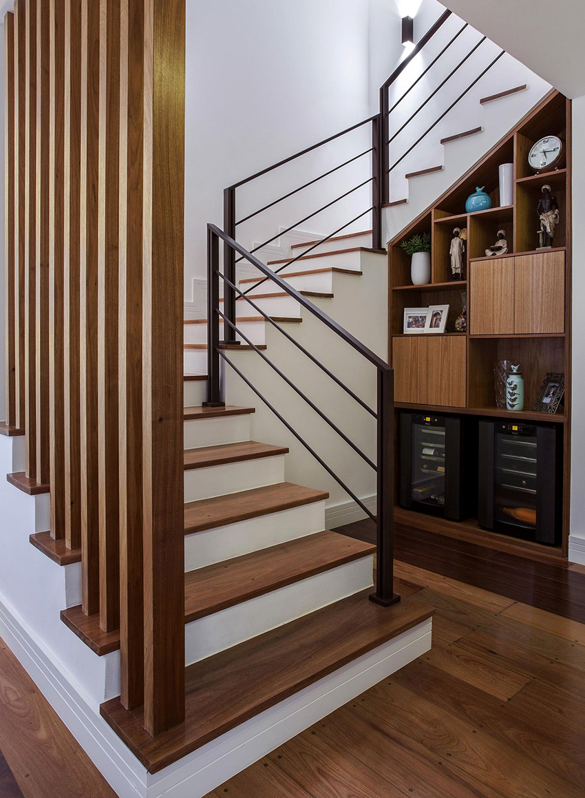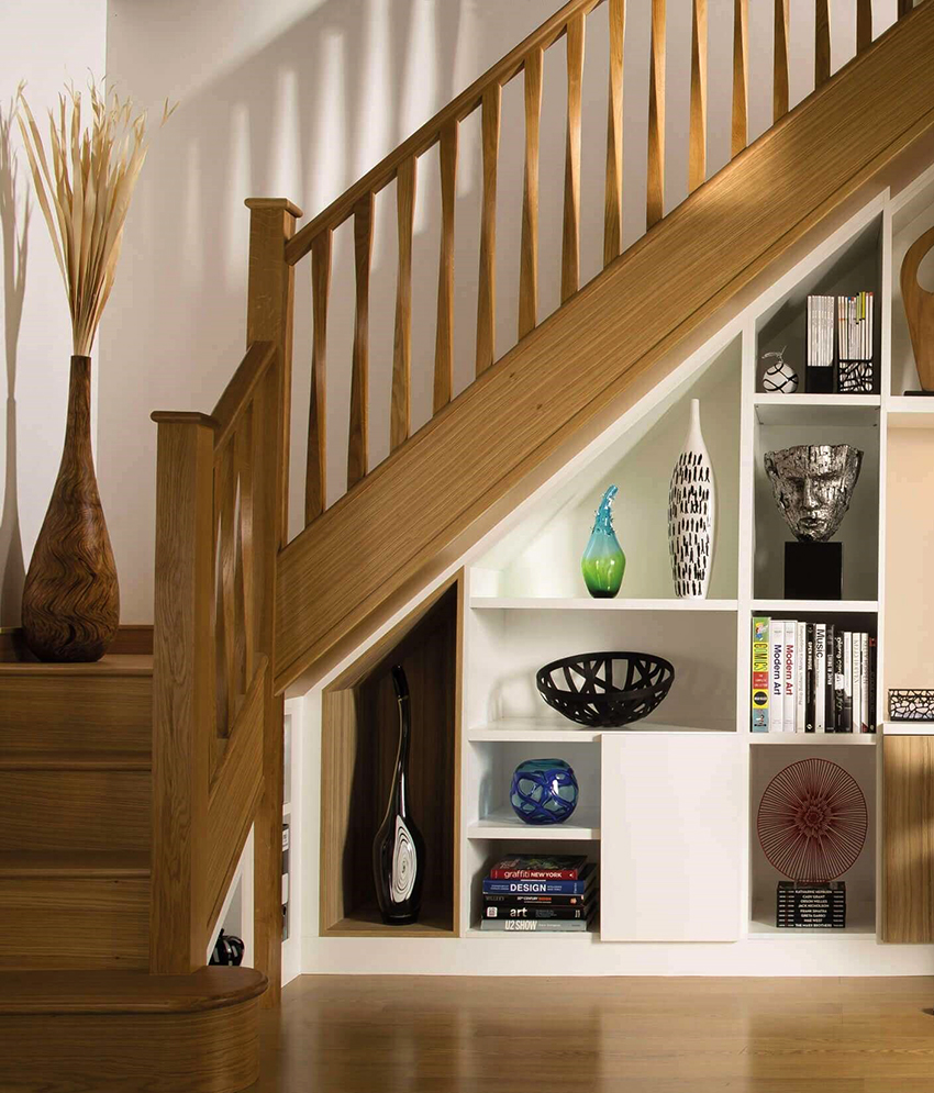 Ciri-ciri kabinet terbuka yang dibina di bawah tangga