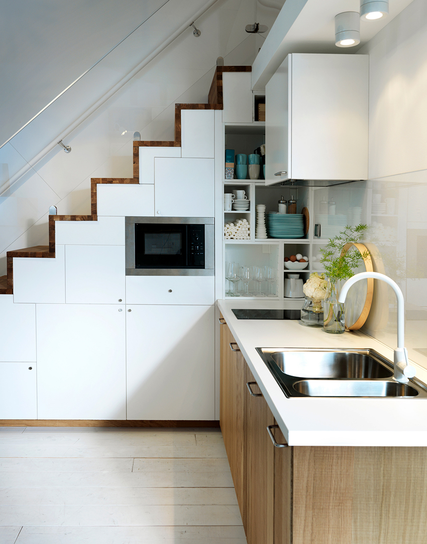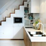 Memasang dapur dengan kabinet terbina dalam di bawah tangga