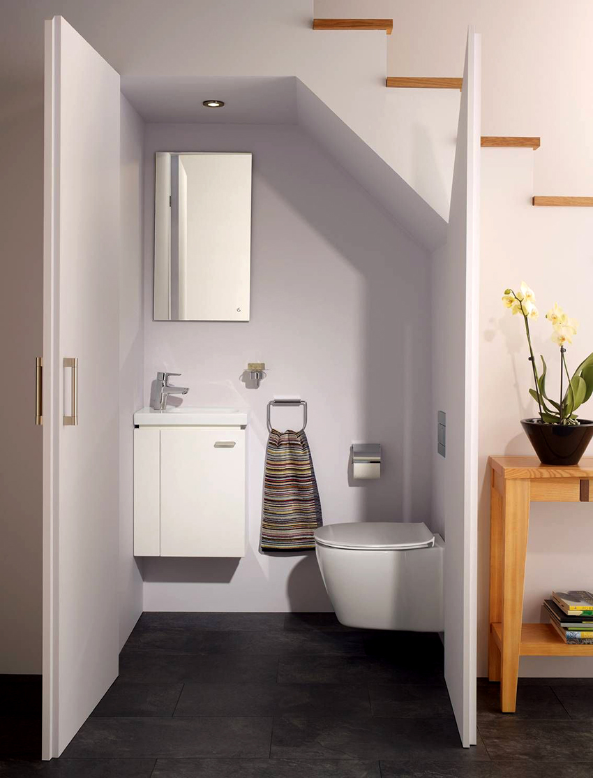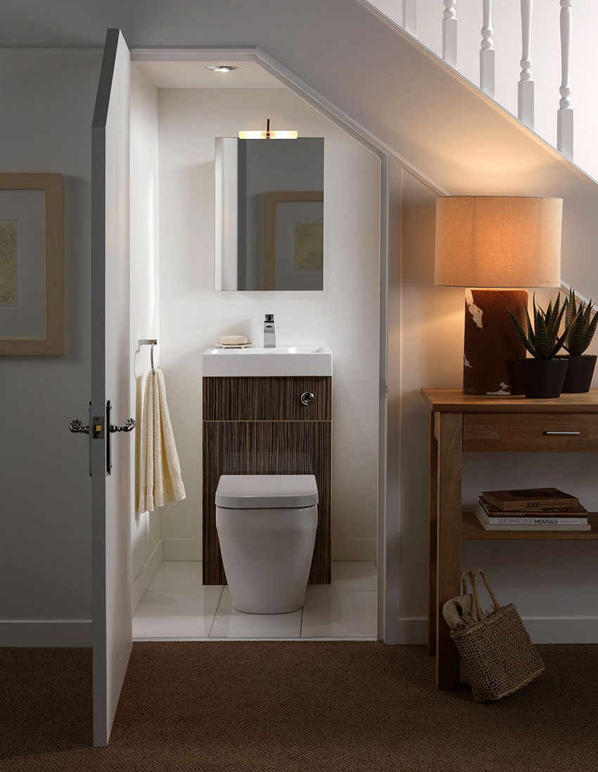 Kabinet ayunan di bawah tangga dipasang jika bilik mempunyai ruang yang cukup untuk membuka pintunya