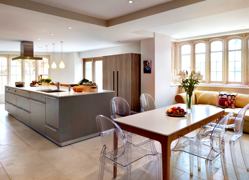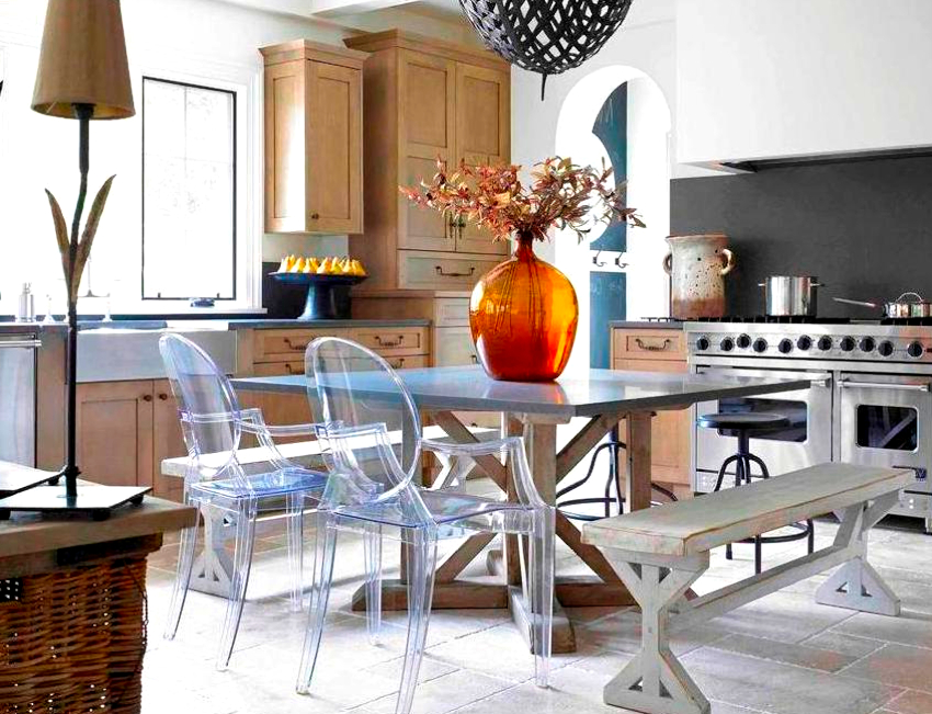 Perabot berjenama moden agak mahal. Anda boleh menambahkan keunikan pada bahagian dalaman dapur anda dengan kerusi lutsinar yang murah. Kavjari dan pengeluar popular lain menghasilkan produk yang tidak terlalu mahal, tetapi kelihatan bergaya dan laconik, yang membolehkan mereka masuk ke hampir semua bahagian dalam.