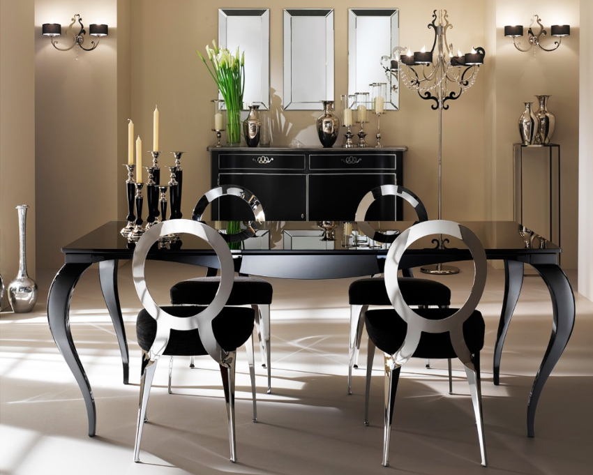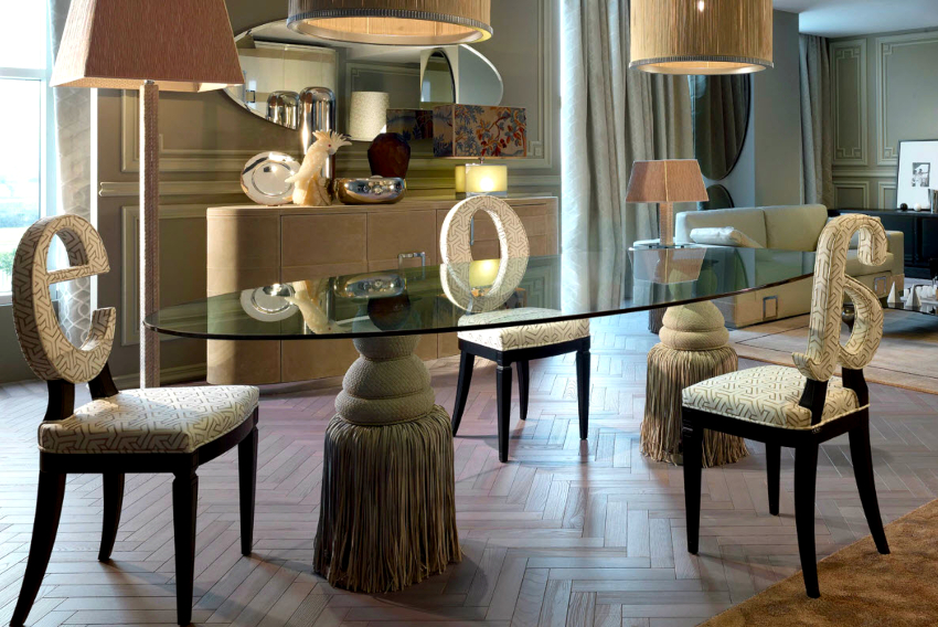 Pertama sekali, perabot seperti itu digunakan untuk mewujudkan rasa selesa ketika makan. Keperluan ini tercermin dalam ciri reka bentuk kerusi. Mereka dilengkapi dengan sandaran tangan yang selesa, mempunyai sandaran belakang yang memanjang, dan lain-lain. Dengan membeli satu set produk ini membolehkan anda menekankan gaya dalaman atau, sebaliknya, untuk mengasingkan ruang makan.