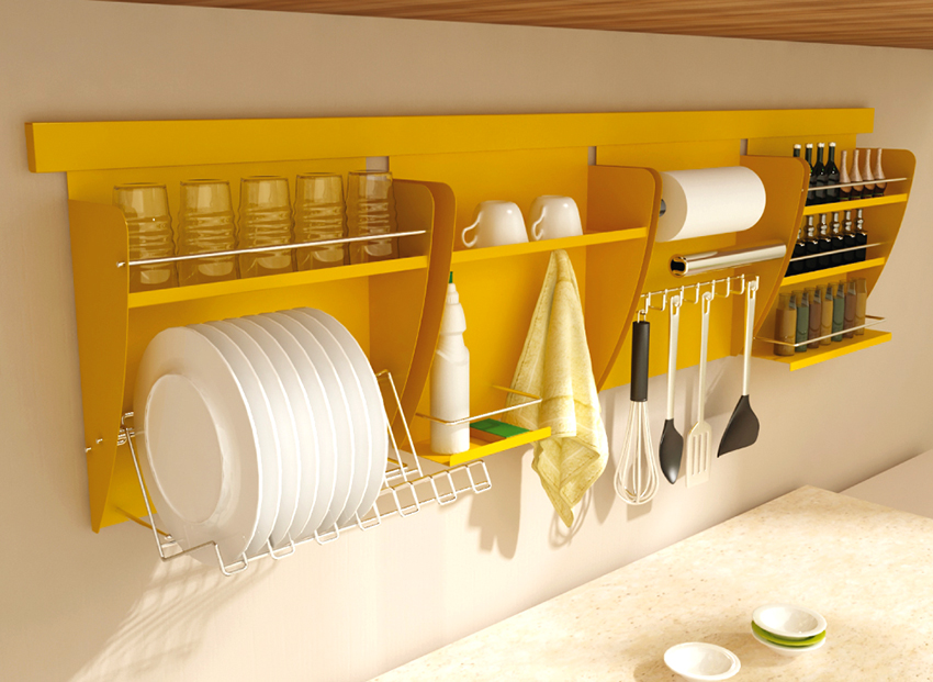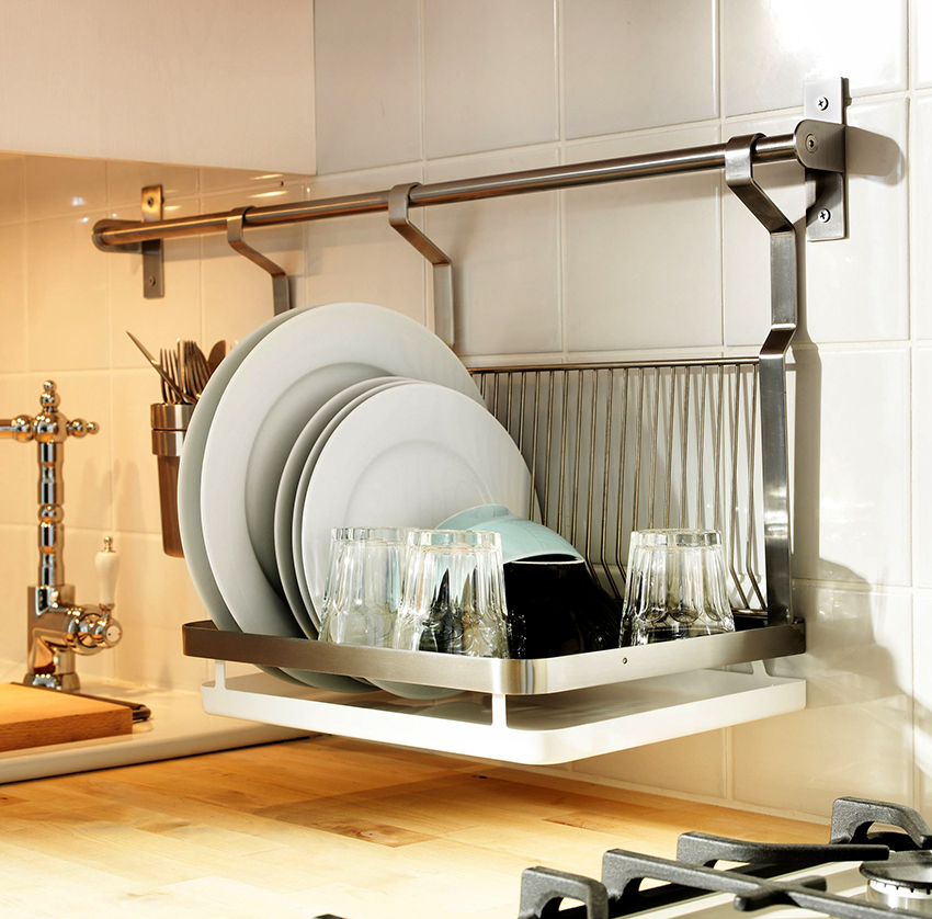 Pengering pinggan yang dipasang di dinding: dengan dan tanpa dulang