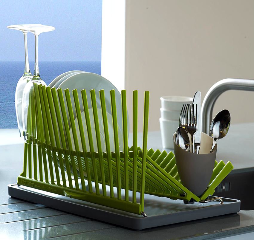 Secara berasingan, perlu diperhatikan pilihan seperti tikar pinggan mangkuk. Produk seperti ini digunakan dalam keadaan ketika ruang dapur tidak memungkinkan untuk melengkapkan pengeringan sepenuhnya. Terdapat permaidani yang mempunyai grid pada ketinggian rendah. Pilihan ini bagus untuk memberi.