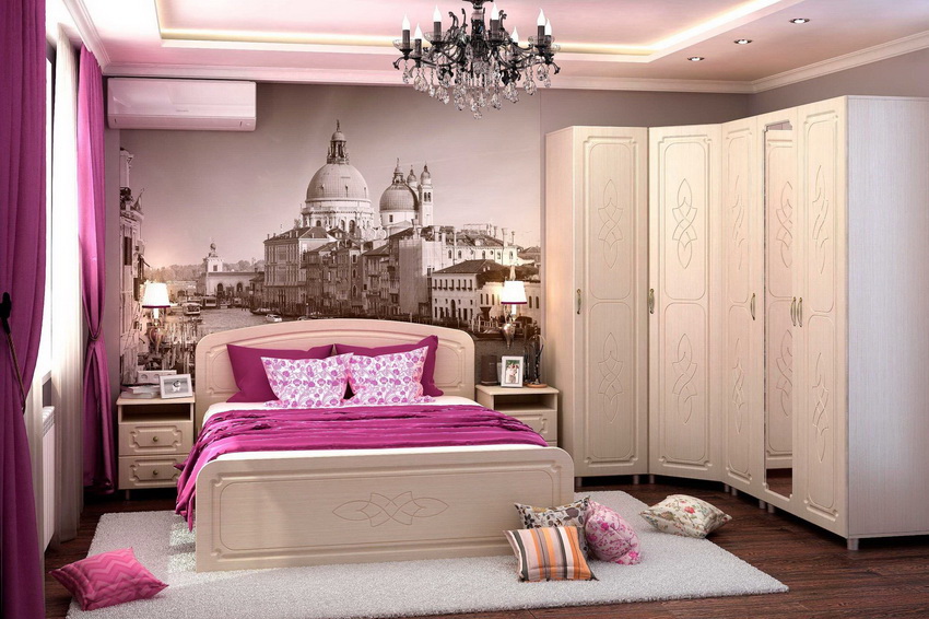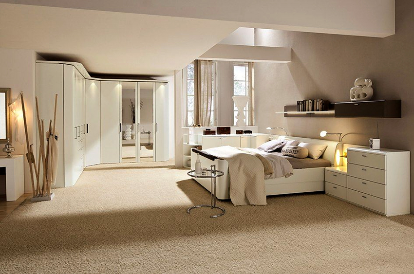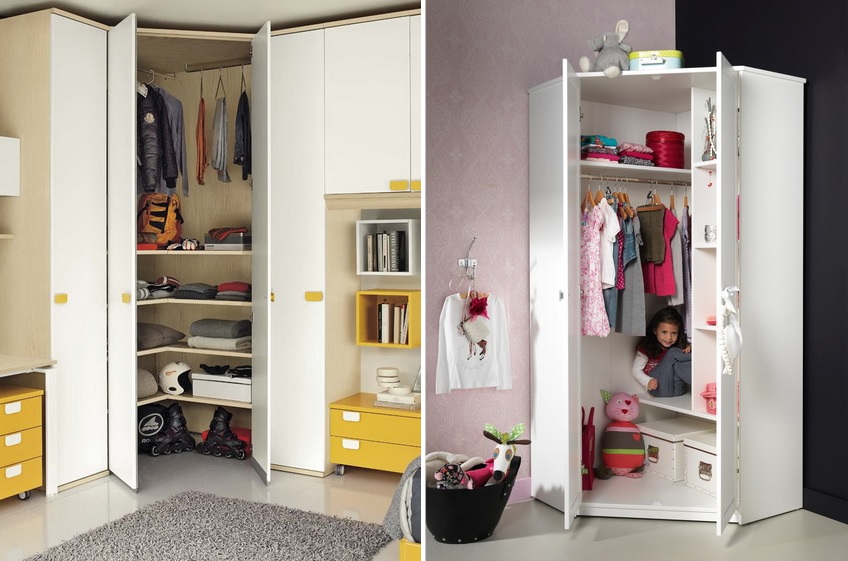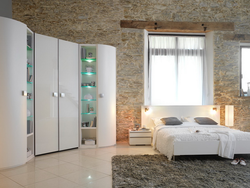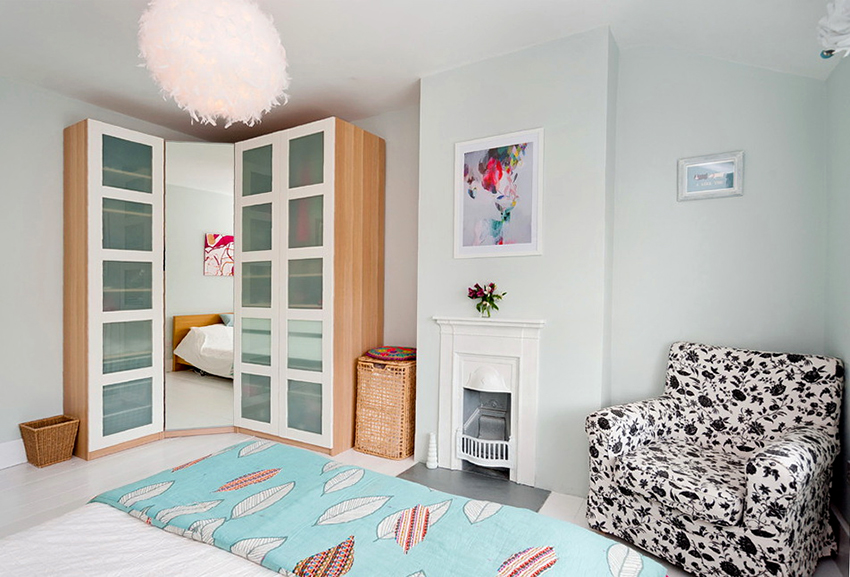 Almari sudut di bilik tidur: ciri reka bentuk