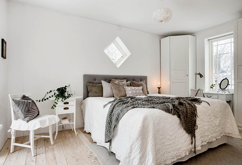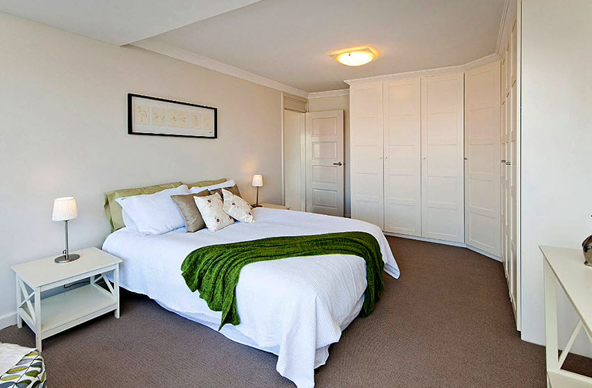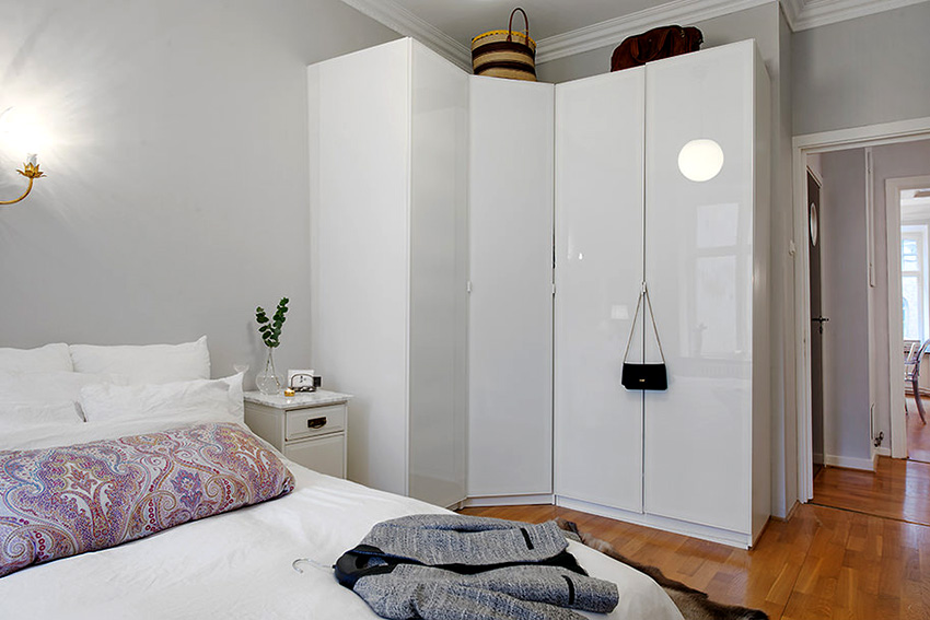 Pilihan untuk lokasi kabinet sudut di bilik tidur