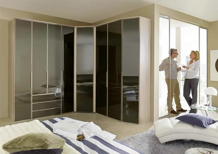 Nasihat berguna! Sekiranya fasad cermin sepenuhnya dipilih untuk kabinet sudut, strukturnya tidak boleh diletakkan di seberang tempat tidur, kerana ini akan menimbulkan sensasi yang tidak menyenangkan bagi orang itu.