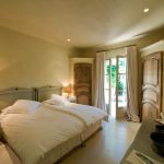 Almari sudut sudut dengan pintu gelangsar kelihatan mewah bahagian dalam bilik tidur