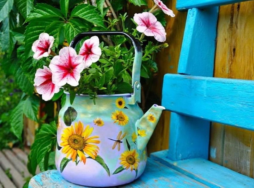 - Hampir semua elemen yang tidak perlu dapat diisi dengan bumi dan ditanam di dalam bunga, termasuk but koyak, pinggan mangkuk seramik atau perabot.