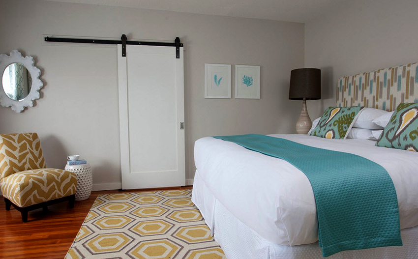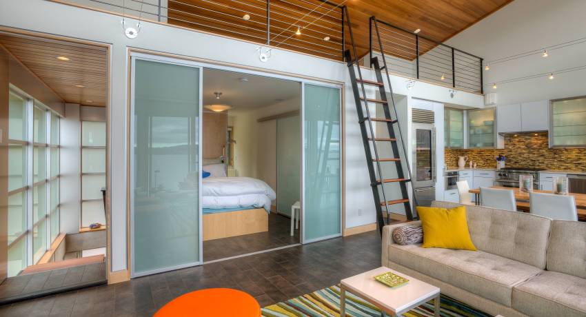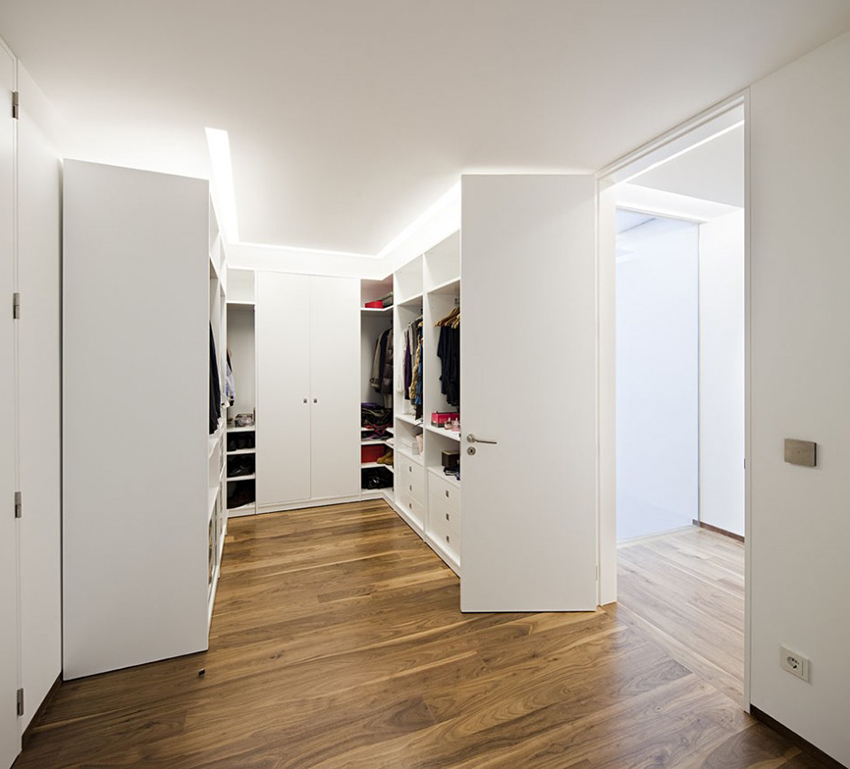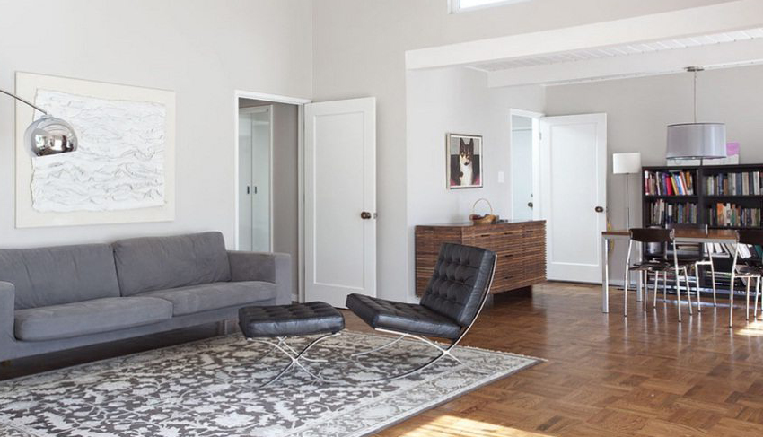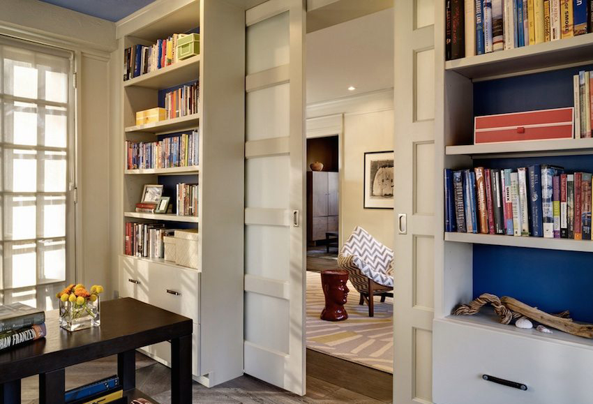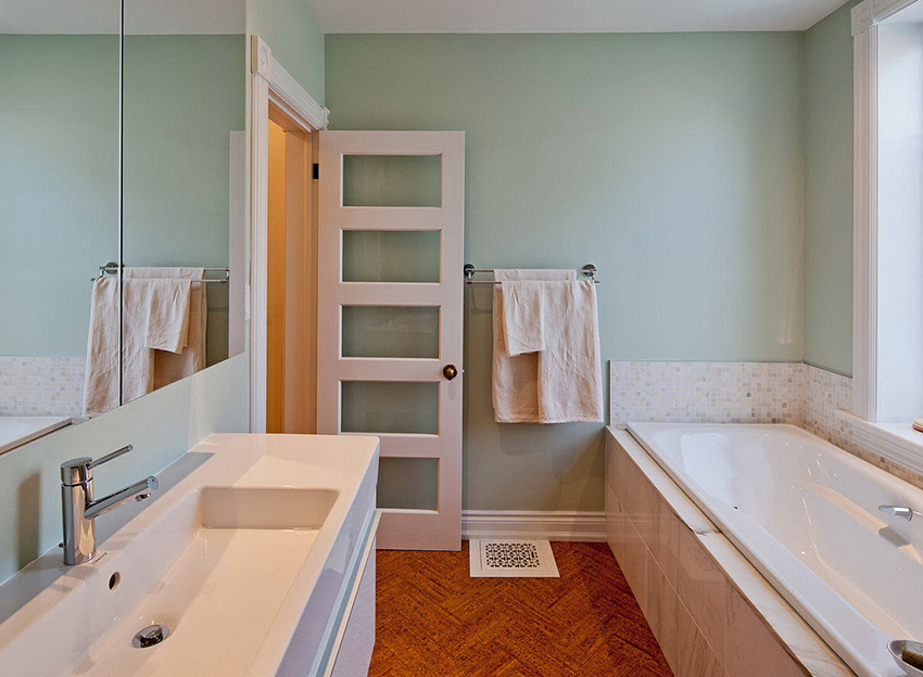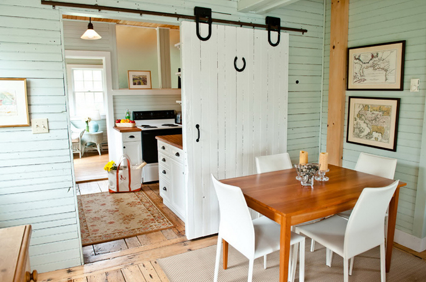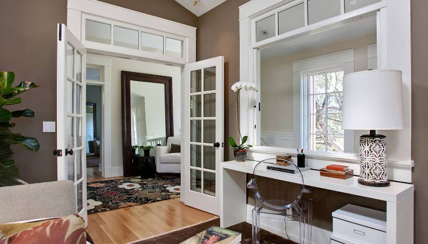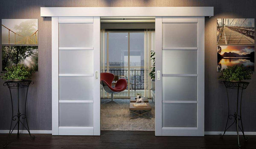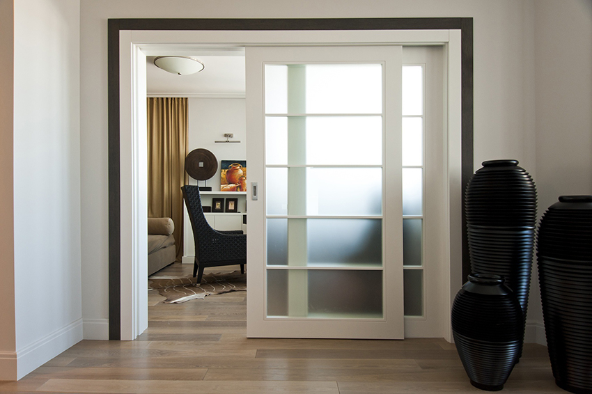 Selalunya anda dapat melihat dalam foto pintu dalaman berwarna putih di bahagian dalam pangsapuri dengan kawasan yang terhad. Struktur sedemikian secara visual meluaskan ruang, mengisinya dengan cahaya dan kedap udara. Kelebihan ini akan sangat bermanfaat sekiranya pangsapuri mempunyai koridor gelap yang panjang.