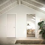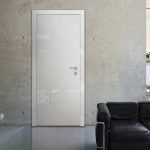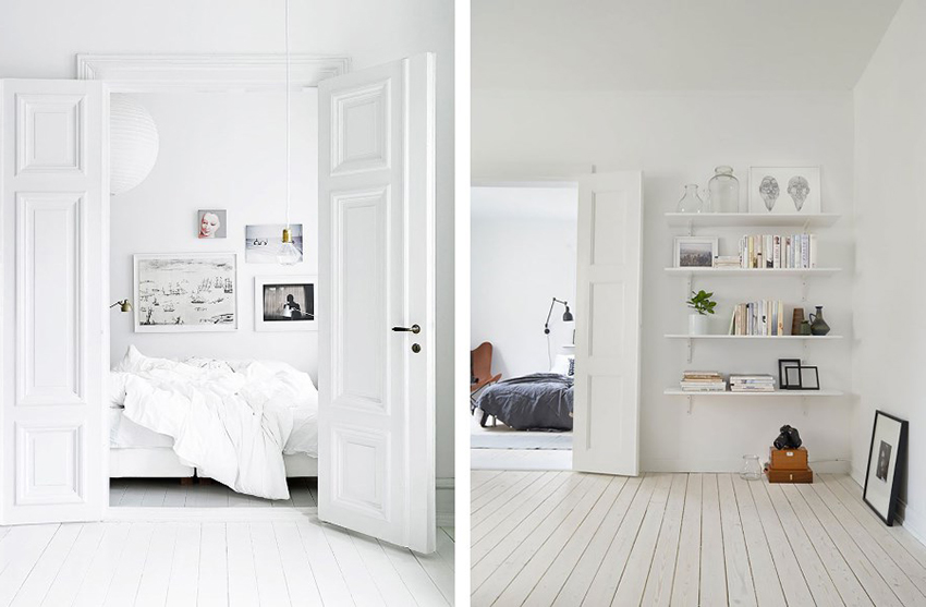 Pintu putih tidak harus dipadankan dengan kemasan dinding atau lantai. Mereka tidak memerlukan teman tambahan.