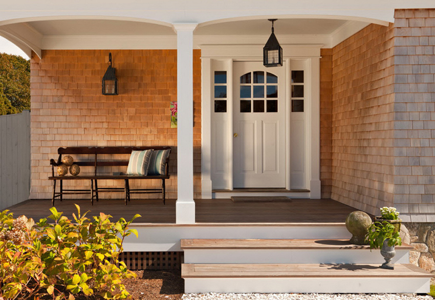 Untuk mempelbagaikan penampilan pintu masuk, anda boleh menggunakan pelbagai elemen: