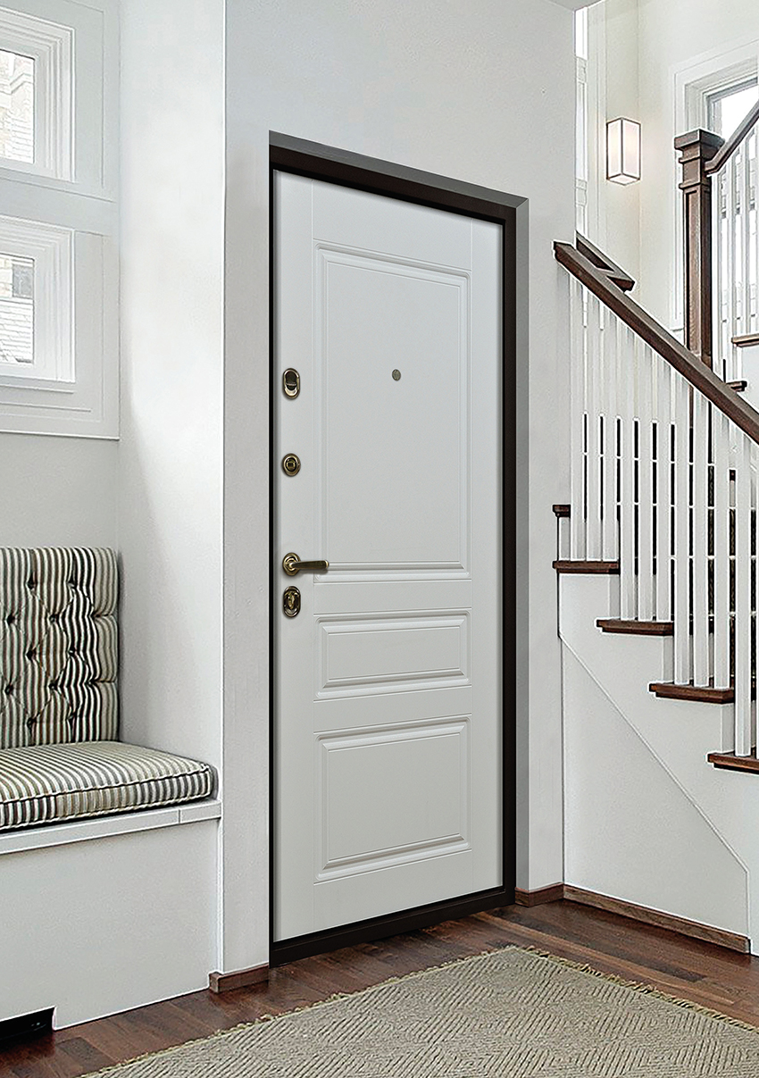 Pintu putih yang terdapat di majalah dalam foto di bahagian dalam apartmen bukan sahaja pintu bilik. Warna ini juga sesuai untuk struktur pintu masuk. Sifat warna putih akan berguna bagi pemilik rumah di kawasan dengan iklim yang panas. Pendedahan berterusan terhadap cahaya matahari menyebabkan pemanasan permukaan. Walau bagaimanapun, pintu putih kurang terdedah kepada ini.