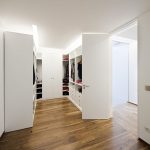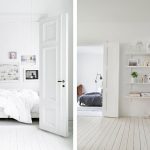 Pereka sering menggunakan kesan pelakuran, yang berdasarkan gabungan "dinding putih / pintu putih". Akibatnya, di dinding dengan permukaan cahaya, bukaan dalaman tidak kelihatan. Berkat ini, bilik kelihatan sangat luas, hampir tidak terbatas. Untuk meningkatkan kesan ini, anda boleh menggunakan cermin dengan atau tanpa bingkai putih.
