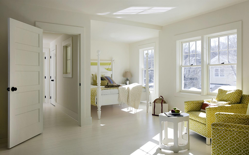 Cara menggabungkan warna dengan betul: foto pintu putih di bahagian dalam pelbagai warna