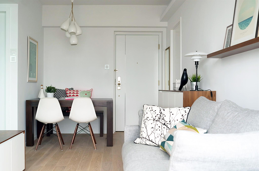 Perkara utama adalah tidak membebani bilik dengan perabot gelap yang banyak. Perkara ini berlaku terutamanya untuk bilik yang terang.