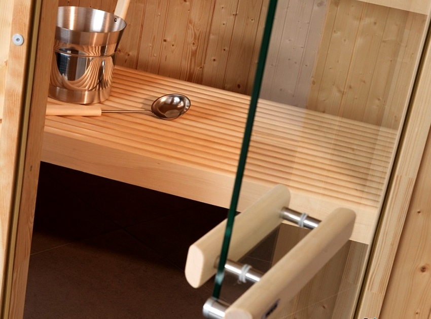 Kayu mesti kering, dirawat dengan antiseptik, bebas dari simpulan dan retakan. Ukuran pintu bilik wap yang disyorkan ialah 70x170 cm.