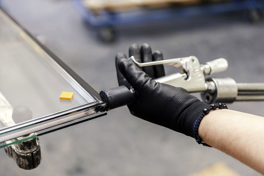 Oleh kerana ambang pintu tidak dipasang ketika menggunakan pintu kaca, perlu meninggalkan jurang hingga 5 mm antara pintu dan lantai agar pintu dapat dibuka dan ditutup dengan bebas. Perkakasan dilekatkan pada daun pintu di tempat yang ditentukan khas. Tanda yang tepat harus dibuat pada balok kotak sehingga pintu berengselnya berada pada permukaan mendatar dan mempunyai sudut tepat yang jelas. Segel silikon diletakkan di alur kotak, yang memastikan sesak dan penutup lembut.