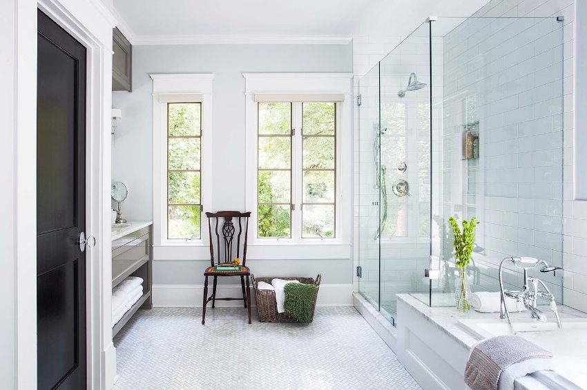 Pintu ke tandas dan tab mandi: foto, pilihan reka bentuk