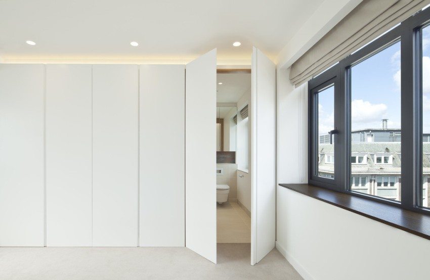 Di pangsapuri dengan susun atur lama, bilik mandi sering terletak sehingga pintunya terbuka dan menghalang laluan ke koridor atau ke dapur. Namun, dalam banyak kes, tidak masuk akal untuk meninggalkan pemasangan pintu ayunan, kerana keputusan untuk menggunakan reka bentuk yang berbeza dapat menyebabkan kebutuhan untuk menambah lebar bukaan dan bahkan untuk pembangunan semula rumah.