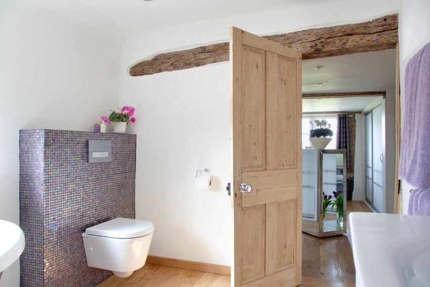 Oleh itu, jika ada niat untuk meletakkan pintu kayu di tandas dan bilik mandi, anda harus memberi perhatian khusus kepada pengudaraan. Salah satu cara untuk memperbaikinya adalah dengan membuat lubang ventilasi di bahagian bawah daun pintu.
