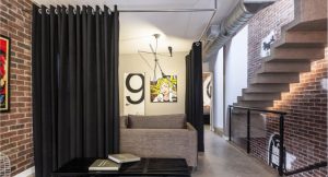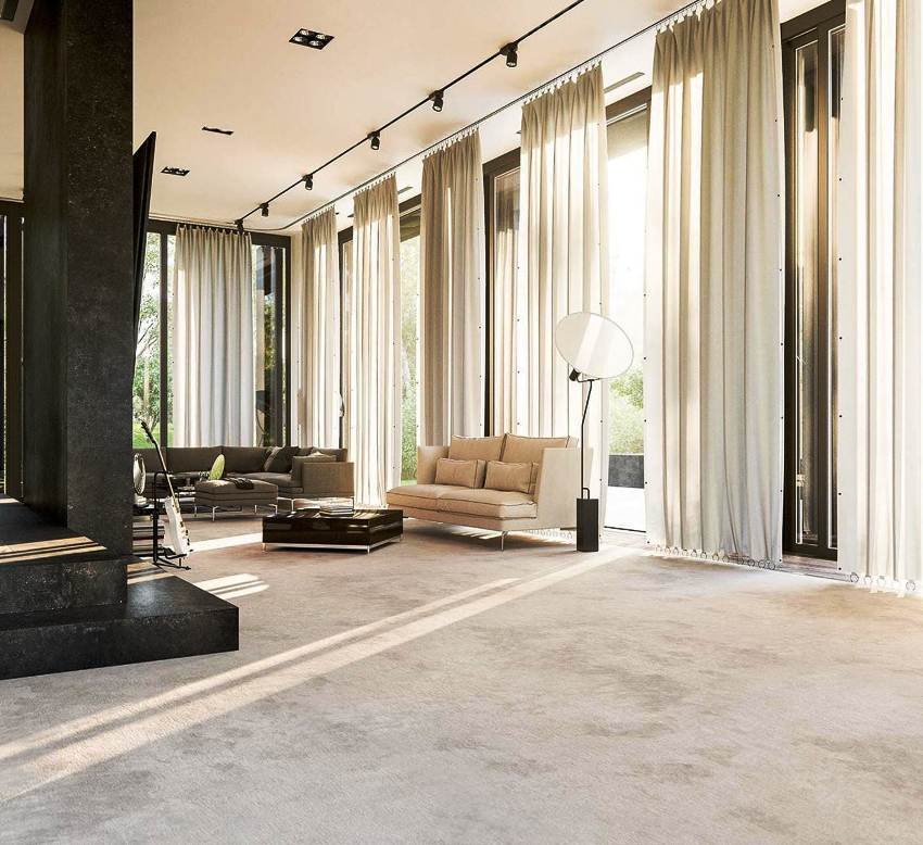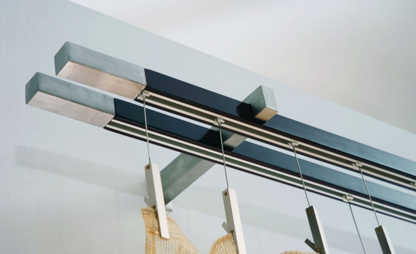 Ini adalah pilihan biasa untuk memasang langsir untuk langsir di bawah siling regangan, yang memerlukan pembukaan dan penutupan langsir dengan teliti agar tidak merosakkan integriti struktur regangan.