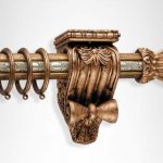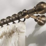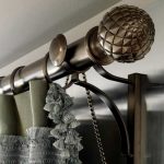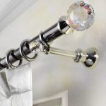 Di kedua sisi, mereka dilengkapi dengan hujung keriting - finial, yang menjalankan fungsi hiasan. Mereka boleh dibuat dalam bentuk elemen geometri, kelopak, bunga, kepala haiwan. Pilihan moden sering dihiasi dengan enamel dan rhinestones, seperti yang ditunjukkan dalam foto langsir.