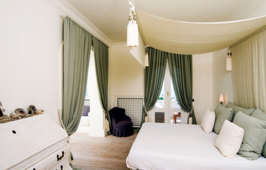 Penting! Struktur sedemikian mempunyai penampilan yang besar, yang akan kelihatan tidak masuk akal ketika menghias bukaan tingkap di sebuah bilik kecil.
