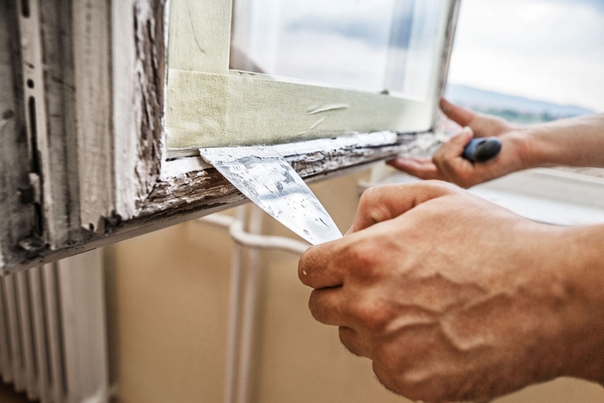 Apabila melindungi tingkap lama dengan kertas, jahitannya juga boleh ditutup dengan dempul