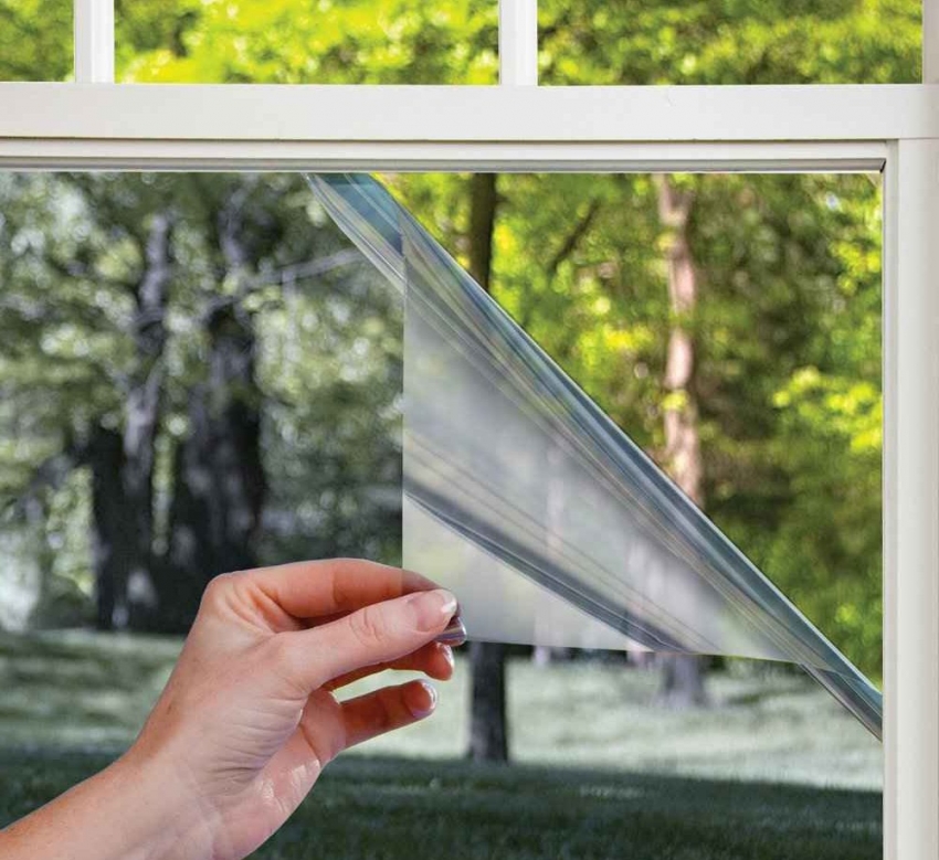 Sekeping filem dengan ukuran yang sesuai dililit dari luar rumah, tidak melupakan elaun kecil. Dengan menggunakan pistol penyembur konvensional, larutan sabun digunakan pada permukaan kaca tingkap, setelah itu filem itu dilekatkan.