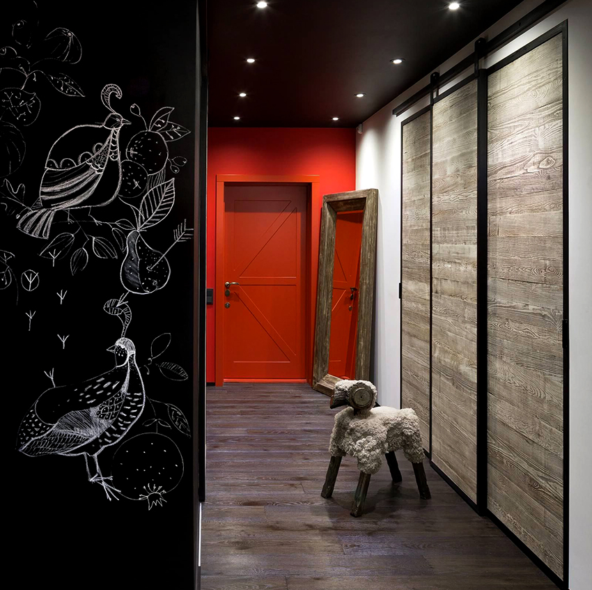 Pemasangan pintu dengan warna yang berbeza adalah wajar apabila bangunan kediaman dibahagikan kepada beberapa koridor atau bilik di sebuah apartmen dengan jalan masuk. Dibolehkan memasang pintu dari pelbagai jenis di bilik untuk tujuan yang berbeza.