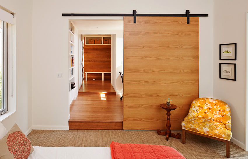 Alternatif untuk struktur swing ialah pintu dalaman gelongsor. Ulasan menggambarkannya sebagai senang dan praktikal. Ia sangat sesuai untuk pangsapuri kecil. Kanvas dipasang di sepanjang panduan relatif ke dinding, pergerakan di alur disediakan oleh penggelek khas.