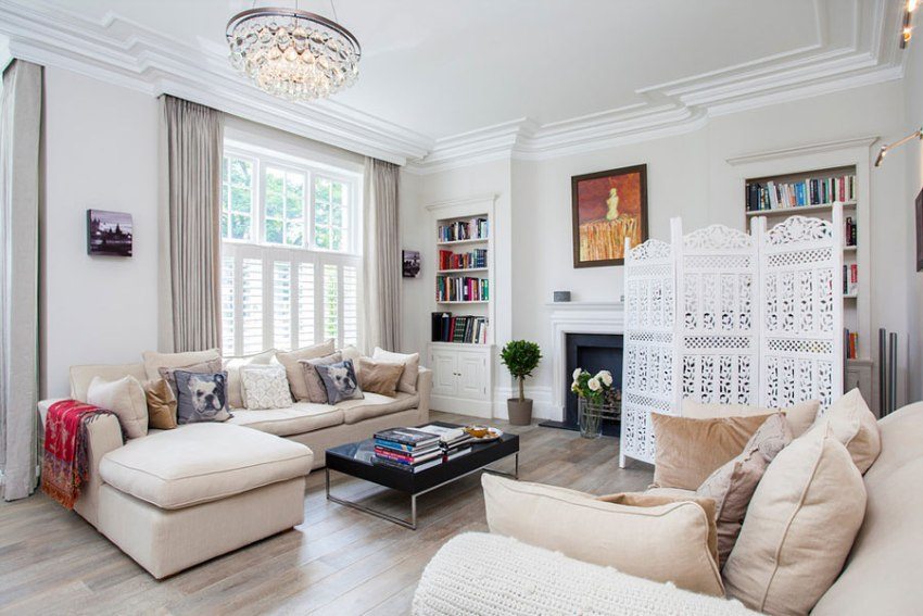 Nasihat berguna! Untuk memperluas bilik secara visual, gunakan cornice selebar dinding sepenuhnya. Sekiranya berbentuk cornice tubular, disarankan untuk meninggalkan cincin luar antara pemegang dan hujung cornice.