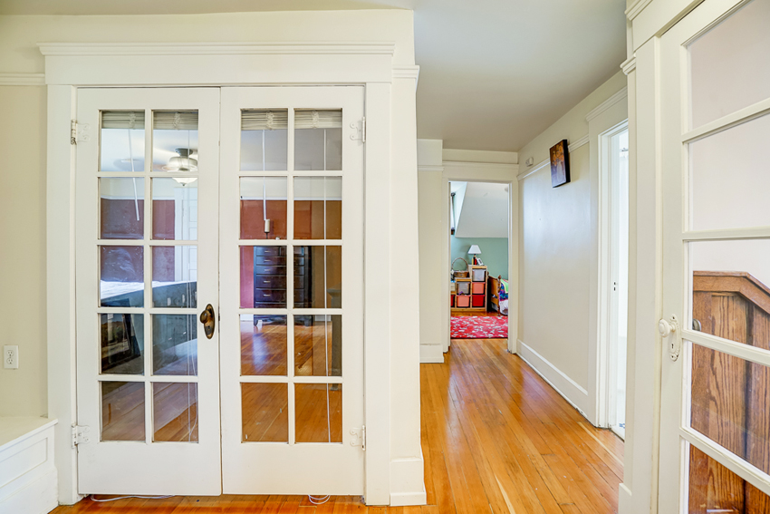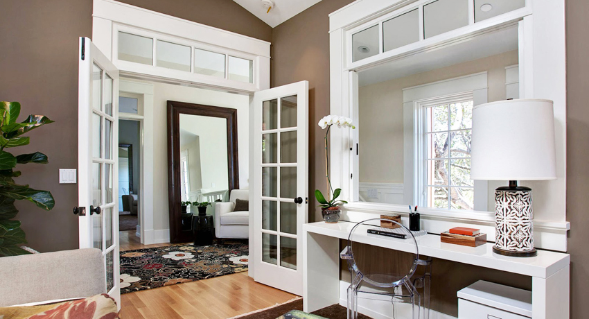 Pilihan pintu dalaman berkaca bergantung pada gaya reka bentuk bilik. Hampir mana-mana pintu dalaman masuk secara organik ke dalam, dibuat dalam gaya klasik. Daun pintu dengan sisipan kaca besar sangat sesuai untuk ruang tamu, ruang makan dan dapur. Pintu dengan kaca membolehkan cahaya siang memasuki lorong dan koridor tanpa gangguan, mewujudkan suasana ruang dalaman yang terang secara visual.