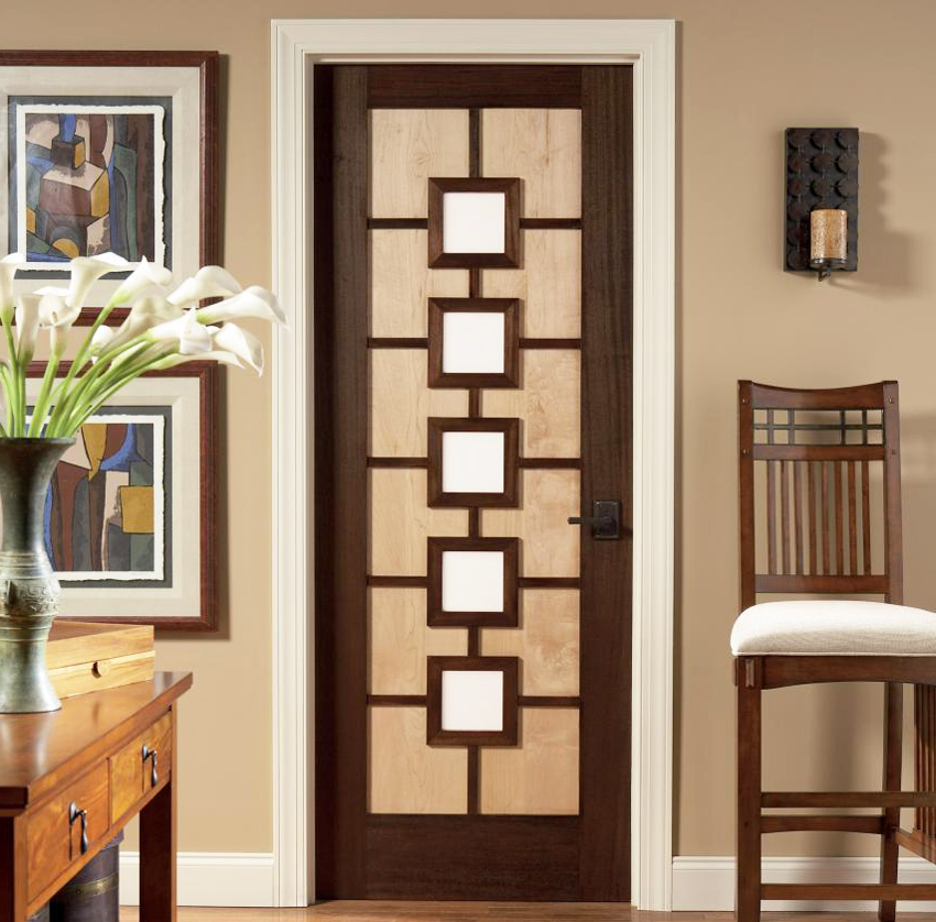 Untuk kaca pintu dalaman, bahan biasa, telus, buram, cermin, berwarna, kaca berwarna, berlian atau bahan sandblasted juga digunakan.