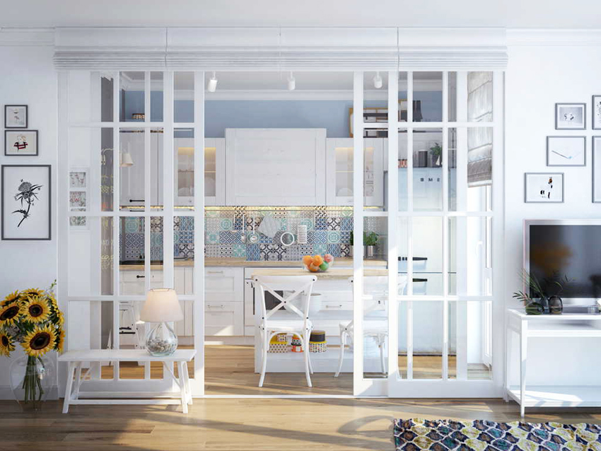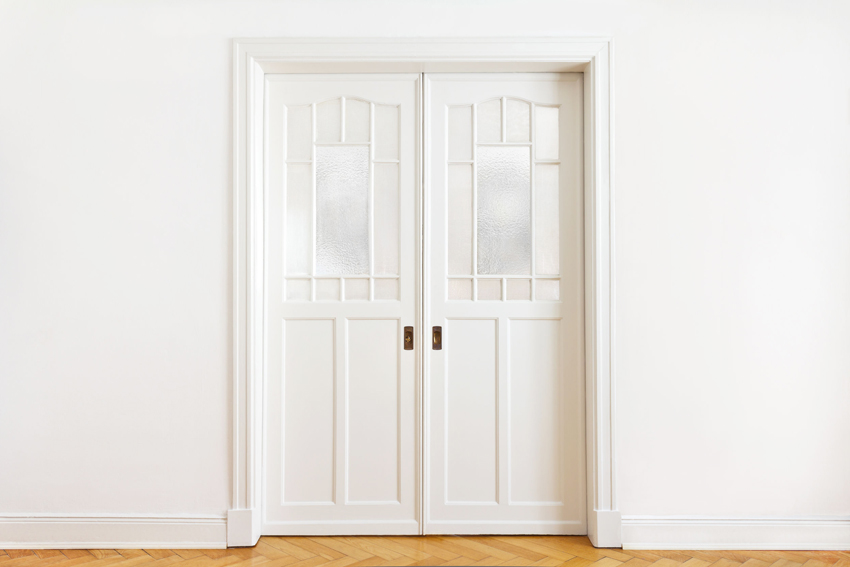 Pintu putih dengan kaca adalah elemen dalaman serba boleh yang sesuai dengan hampir semua reka bentuk
