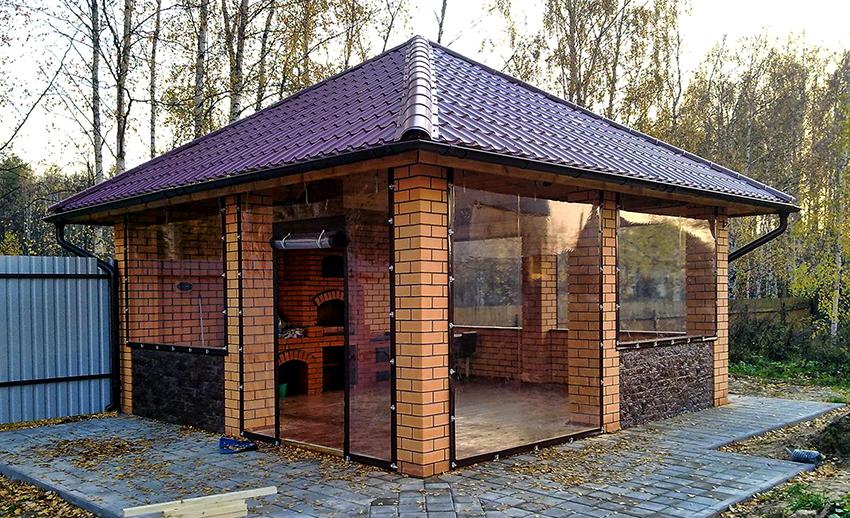 Ingin menjadikan bahagian bawah struktur lebih berat, untuk membuat tiruan dinding dengan tingkap, atau hanya untuk merasa lebih terlindung, dicadangkan untuk menggabungkan kain lutsinar dengan bahan legap dengan warna yang diinginkan. Di Internet, anda dapat menemui banyak foto tingkap PVC lembut untuk gazebo, yang diilhamkan olehnya, mudah untuk memilih pilihan yang paling boleh diterima yang akan menjadi pelengkap yang sempurna untuk bahagian luar.