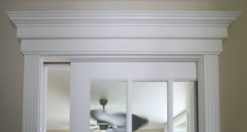- apabila daun pintu dihiasi dengan sebilangan besar elemen hiasan, maka satu-satunya fungsi selongsong adalah untuk menutup jurang teknologi antara kotak dan dinding;