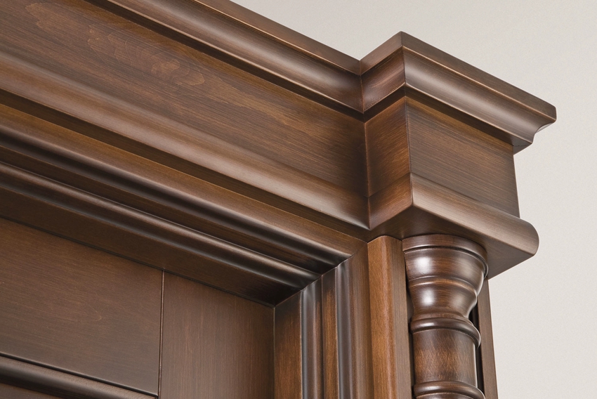 - hiasan pintu timbul atau kerinting, gambarnya mengejutkan dengan reka bentuk khas. Dalam pembuatannya, kayu spesies berharga digunakan, yang membolehkan anda menyampaikan bentuknya dengan tepat, tetapi ini mempengaruhi kos produk dengan ketara;