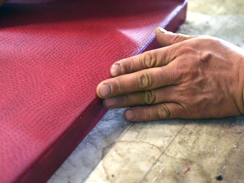Semasa membeli kit siap pakai, anda harus memberi perhatian khusus kepada kualiti dermantin. Untuk melakukan ini, ia mesti dikeluarkan dari bungkusan dan baunya dinilai.Sekiranya ia adalah "aroma" sintetik yang keras, pelanggaran teknologi pembuatan mungkin berlaku. Hasilnya, bahan tersebut akan lebih mudah dipakai. Leatherette berkualiti tinggi mempunyai bau yang halus dan agak menyenangkan.