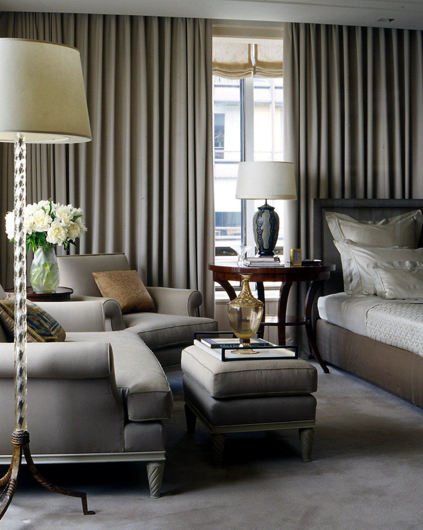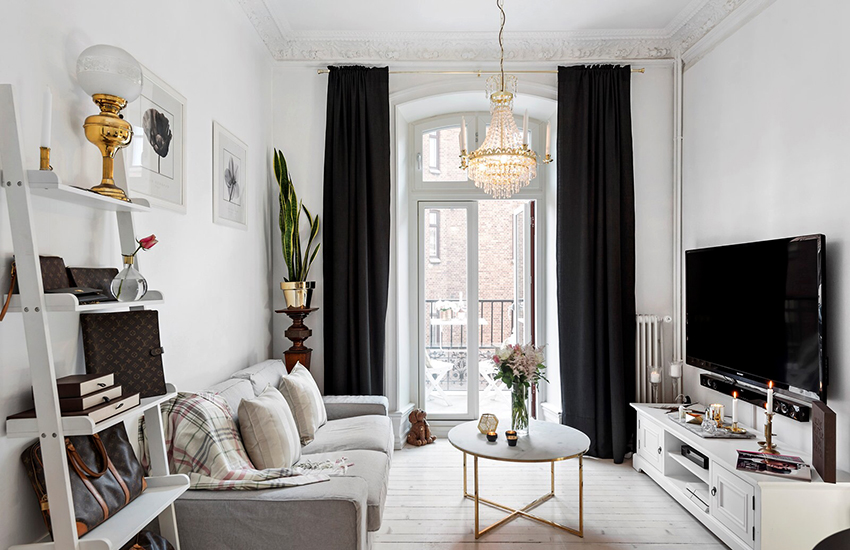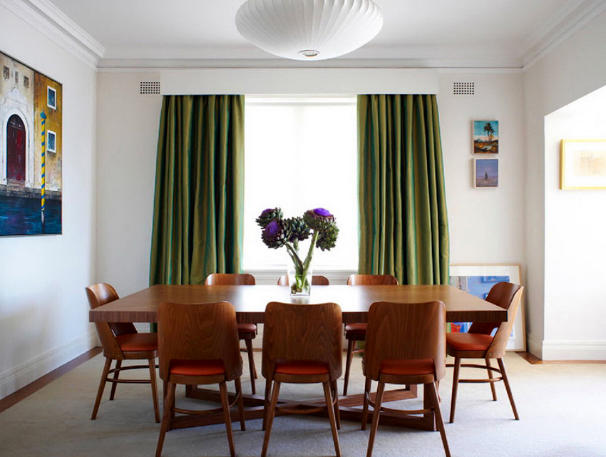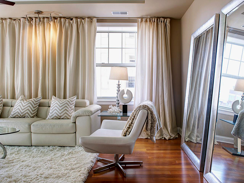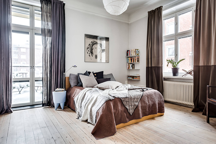 - Tirai sutera ringan panjang akan menyesuaikan ruang bilik kecil.