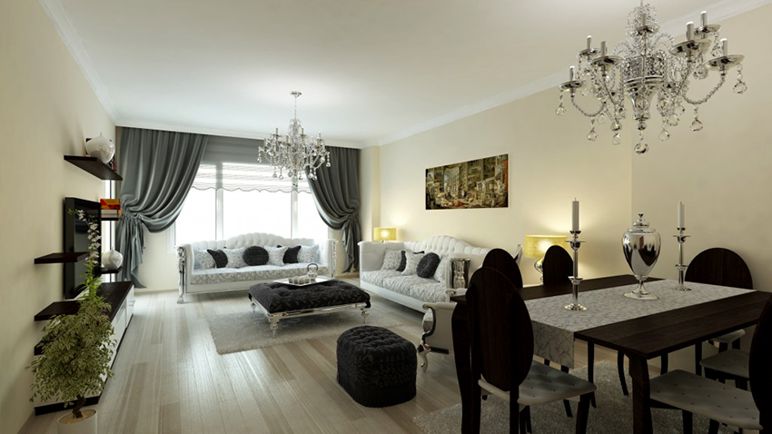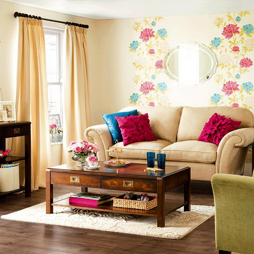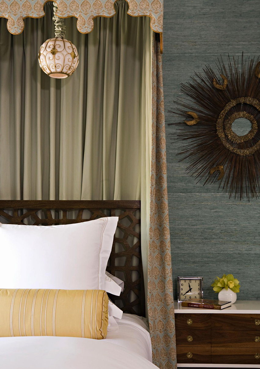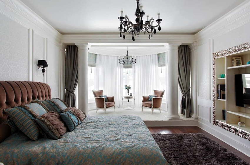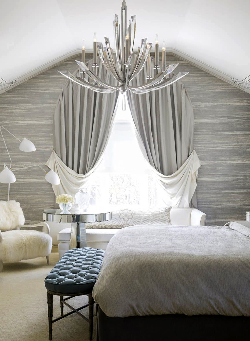 - Tirai sutera ringan panjang akan menyesuaikan ruang bilik kecil.