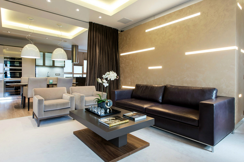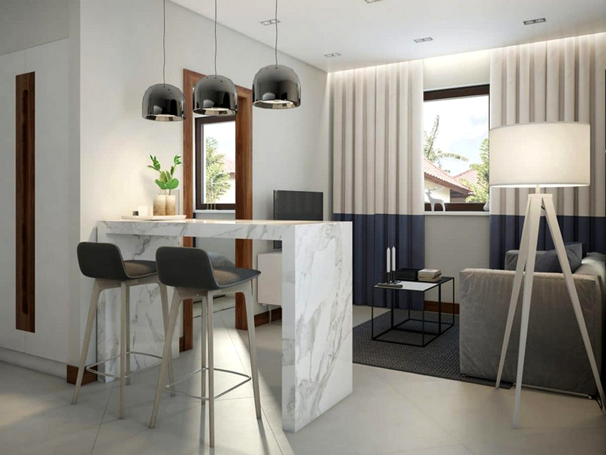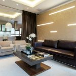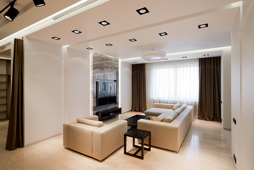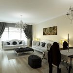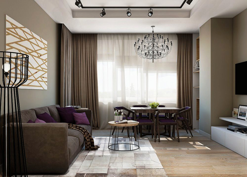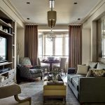 Pilihan untuk langsir untuk ruang tamu dengan gaya moden