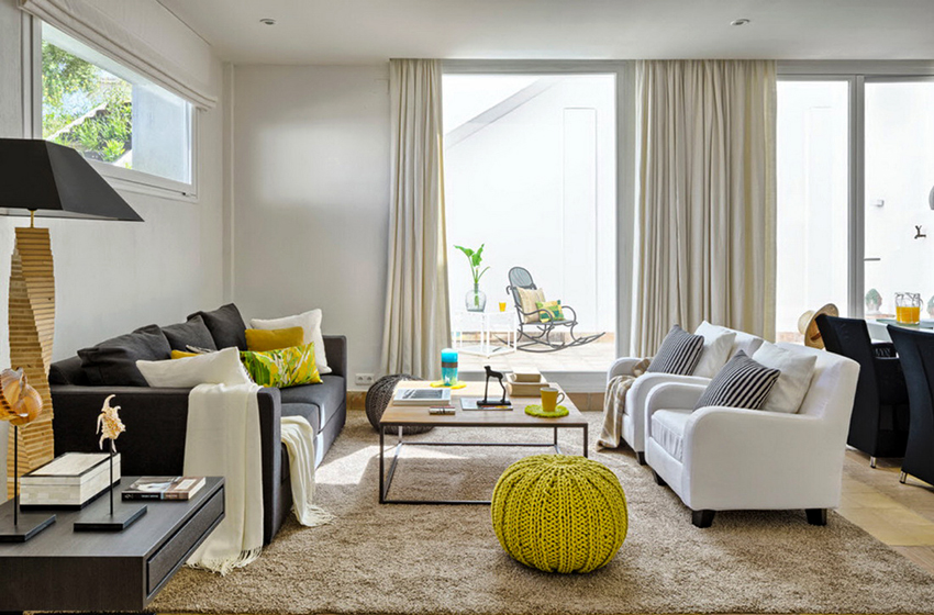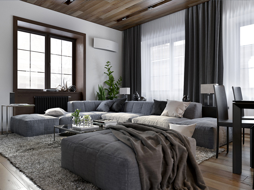 - Langsir yang sesuai dengan perabot - moden dan bergaya.